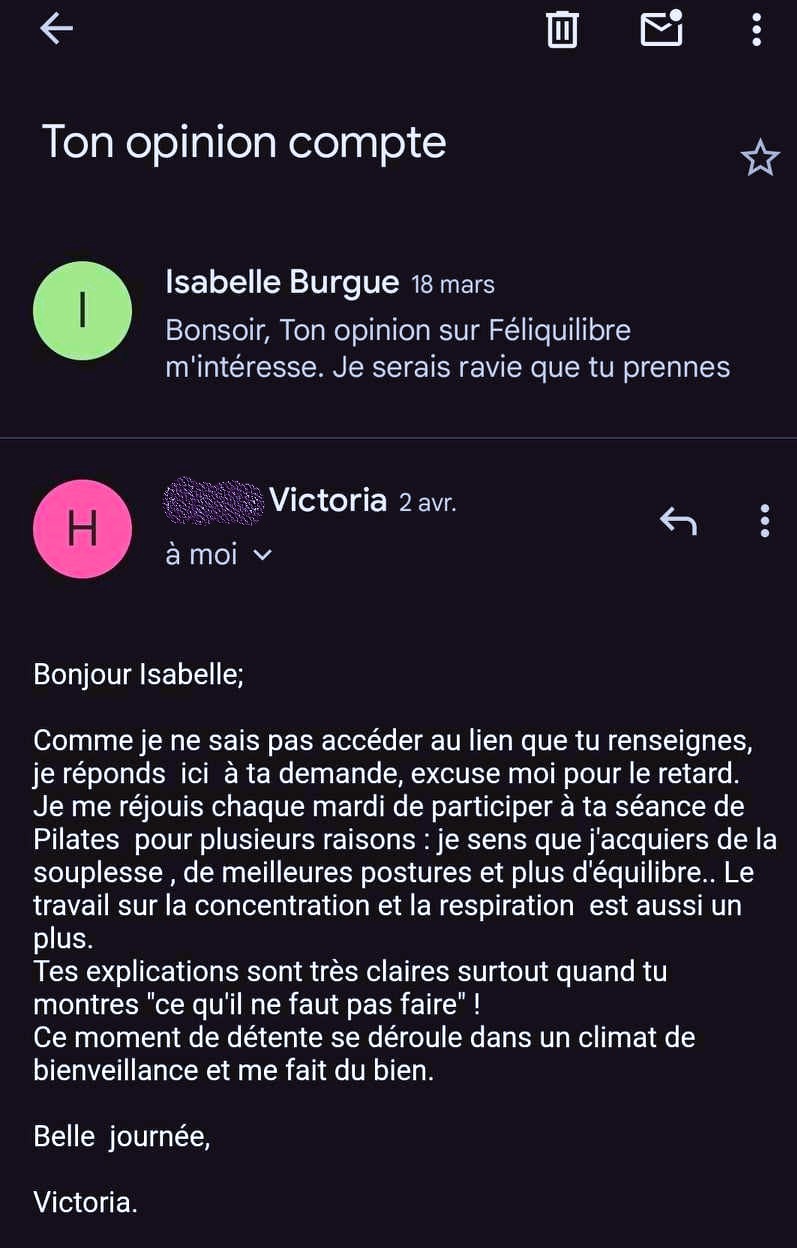 Chez Féliquilibre, que ce soit dans le centre ou en ligne, les séances se donnent en individuel ou en petits groupes pour pouvoir répondre aux besoins de chacun. L’écoute active et le sur-mesure sont des valeurs primordiales.